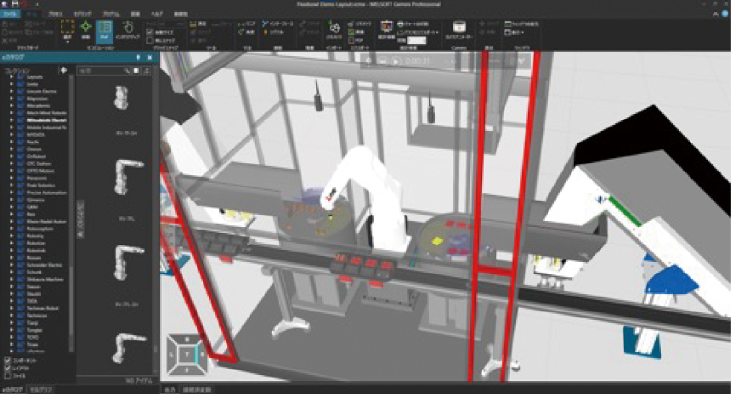 デジタル空間上で工場・設備・ラインの機器や装置の動作を事前シミュレート、工程別作業の最適化・不具合の検証が行えます。