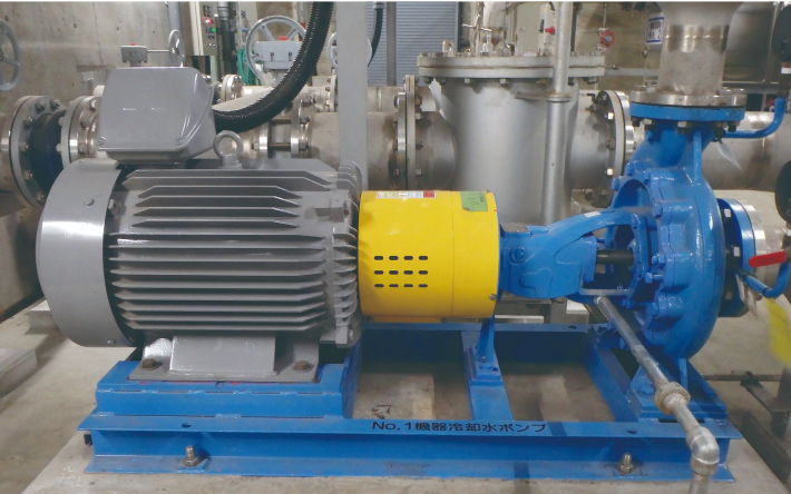 機械室に設置された高効率モータで、プラントの運転に必要な送風機や冷却水ポンプ、搬送コンベアなどを駆動しています。