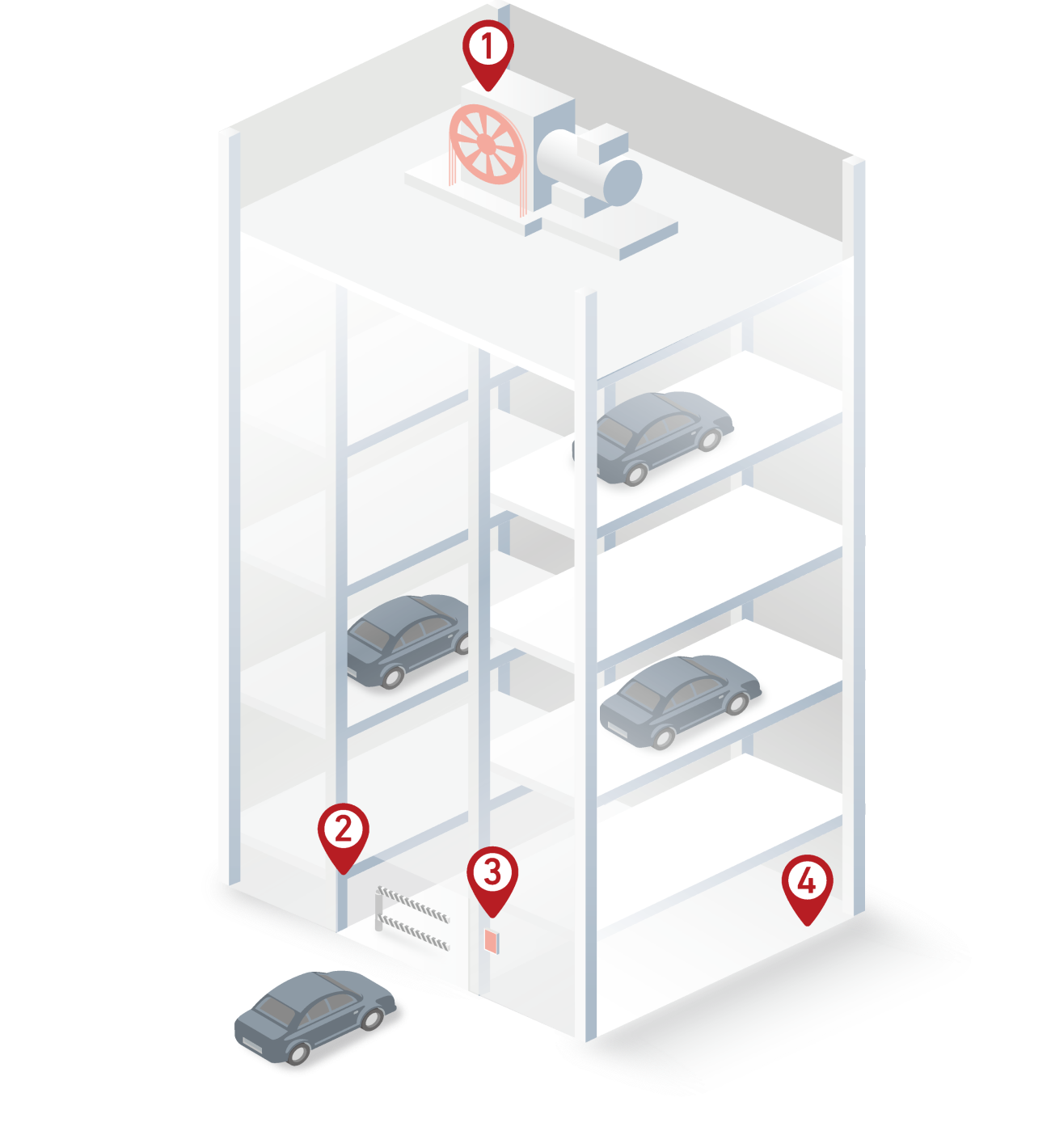 多層化・立体化することで、少ない面積でより多くの車を駐車できる施設です。