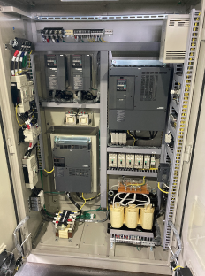 駐車場内の駐車場制御盤(インバータ、シーケンサ)では、操作盤による操作結果を反映し、車両搬送パレットに必要な駆動用電源を送ります。